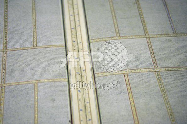 A book with the Al-Naba sura (11th century, Iraq or Iran) is presented in the exhibition The Song of the World, 02 October 2007 at the Musee du Louvre in Paris. The exhibition, which takes place from 05 October until 07 January 2008, outlines the evolution of art in Iran under the Safavid Dynasty (1501?1736) presenting a selection of masterpieces from the Aga Khan collection of Islamic art, as a preview to the opening of the Aga Khan Museum in Toronto. AFP PHOTO STEPHANE DE SAKUTINTwo pages with the integral version of the Coran (India, 13th century) is presented in the exhibition 'The Song of the World', 02 October 2007 at the Musee du Louvre in Paris. The exhibition, which takes place from 05 October until 07 January 2008, outlines the evolution of art in Iran under the Safavid Dynasty (1501?1736) presenting a selection of masterpieces from the Aga Khan collection of Islamic art, as a preview to the opening of the Aga Khan Museum in Toronto. AFP PHOTO STEPHANE DE SAKUTIN