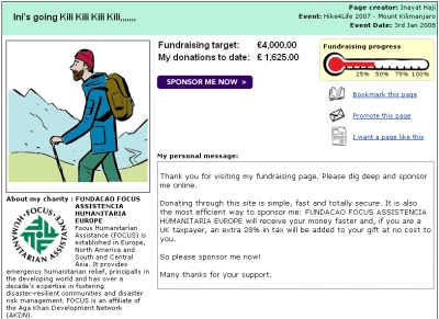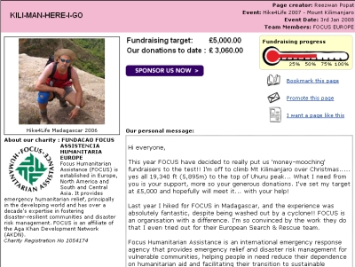 Myself and Reezwan Popat have taken on a personal challenge to climb Kilimanjaro over the holidays to raise funds for FOCUS Humanitarian Assistance (http://www.hike4life.net). As you may remember, we also did the hike last year, when we trekked in Madagascar, & raised in excess of £7000 collectively. We thank all of you who supported us last year. This year, we have a more ambitious goal, & are aiming to raise £10000 collectively – & we would love to have your support again.