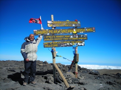 We’ve read amazing tales of Almoonir Dewji – Ismaili Muslim from Calgary – who took up AXIS Pharmacy Kilimanjaro Challenge 2007. Above he hoists flag of Calgary Flames, a professional hockey team based in Calgary Alberta, at Uhuru Peak.