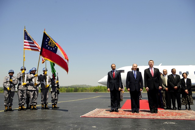 A band greeted him with the Ismaili anthem and the U.S. national anthem, and a representative from Gov. Sonny Perdue’s office as well as local politicians were on hand to welcome him.