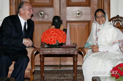 Yonhap News: The spiritual leader of Shia Imami Ismaili Muslims, the Aga Khan meets with Indian president Pratibha Patil (L) in New Delhi, India on 13 May 2008.