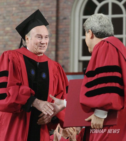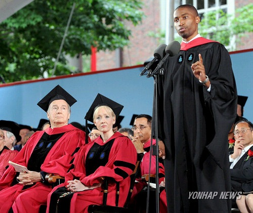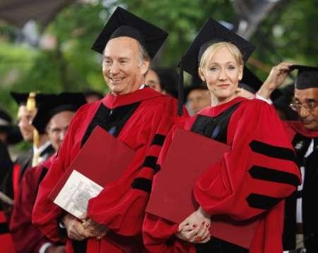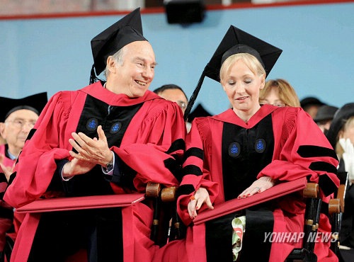 The Aga Khan (L) applauds after British author J.K. Rowling (R) received an honorary degree during Commencement exercises at Harvard University in Cambridge, Massachusetts, USA, 05 June 2008. British author J.K. Rowling received an honorary Doctor of Letters degree during the ceremony. EPA/MATT CAMPBELL