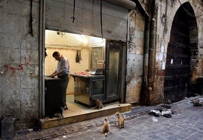 A souq in the center of the old city of Aleppo, northern Syria. In a ceremony held in Aleppo the same day, His Highness the Aga Khan, Imam of the Shia Ismaili Muslims, and founder and Chairman of the Aga Khan Development Network (AKDN), marked the completion of cultural revitalisation work on the Citadels of Aleppo, Salah ad-Din and Masyaf.