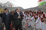 Accompanied by the First Deputy Prime Minister of Tajikistan, His Excellency Asadullo Ghulomov, Mawlana Hazar Imam travelled aboard an Aga Khan Development Network helicopter from Dushanbe to Khorog, the capital of the Gorno-Badakhshan Autonomous Oblast (province). Upon his arrival, he was received by the Governor of Gorno-Badakhshan, Qodir Qosim, and the Mayor of Khorog, Mulkamon Nazaraliev, as well as leaders of the Jamat and the Aga Khan Development Network.