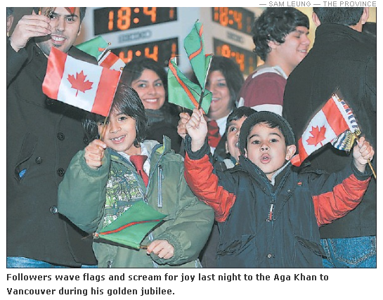 The hereditary leader of the world’s 15 million Shia Ismaili Muslims is on his last stop of a cross-Canada tour as part of a Golden Jubilee to mark the 50th anniversary of his reign.