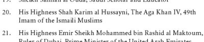 His Highness the Aga Khan among the 500 Most Influential Muslims list of 2009 by ismailimail Posted on November 16, 2009November 16, 2009 Study conducted by The Royal Islamic Strategic Studies Centre. Chief Editors Prof John Esposito and Prof Ibrahim Kalin Complete PDF document Page 20, list Page 64, His Highness Shah Karim al Hussayni http://www.rissc.jo/ Share this via: Click to email a link to a friend (Opens in new window) Email Click to share on WhatsApp (Opens in new window) WhatsApp Click to share on Reddit (Opens in new window) Reddit Click to share on Bluesky (Opens in new window) Bluesky Click to share on LinkedIn (Opens in new window) LinkedIn Click to share on Facebook (Opens in new window) Facebook Click to share on Threads (Opens in new window) Threads Click to share on Nextdoor (Opens in new window) Nextdoor More Click to share on Telegram (Opens in new window) Telegram Click to share on Pinterest (Opens in new window) Pinterest Click to share on Mastodon (Opens in new window) Mastodon Click to share on X (Opens in new window) X Click to share on Tumblr (Opens in new window) Tumblr Click to share on Print PDF (Opens in new window) Print PDF Like Loading... Related