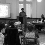 In the first session of the day, two panelists were featured. The first speaker, Dr. Babou offered an overview of Sufism and its role in the Islamic culture; the second, Karim Gillani, discussed the specificities of Sufi music. Dr. Babou introduced Sufism as a little known Islamic musical tradition. He said that Muslims are always portrayed as either fighting or praying. However, he continued, music and dancing are a huge part of Islam. Sufis are “practitioners of mystical Islam,” and music and the use the voice is a immense part of worship.