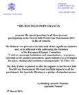 His Holiness Pope Francis sends special greetings to Street Child World Cup Tournament participants May 2, 2014 His Holiness Pope Francis sends special greetings to Street Child World Cup Tournament participants – with Photographs 683 × 828 His Holiness Pope Francis sends special greetings to Street Child World Cup Tournament participants