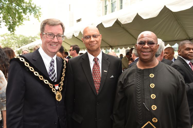 Ottawa –Mayor Jim Watson and His Excellency Membathisi Mdladlana, High Commissioner of South Africa, today officially dedicated the outdoor area in front of the Ottawa City Hall’s Heritage Building, and home to the Human Rights Monument, as Nelson Mandela Square.