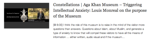 Constellations – Aga Khan Museum – Triggering Intellectual Anxiety – Louis Monreal on the purpose of the Museum September 2, 2014 Constellations | Retrospective: Artistic Renderings of the Aga Khan Museum, Ismaili Centre and their Park 728 × 197
