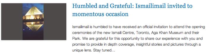 IM Reporting from TO – Humbled and Grateful – Ismailimail invited to momentous occasion September 11, 2014 Discovering Aga Khan Museum: The Gift Shop 716 × 188