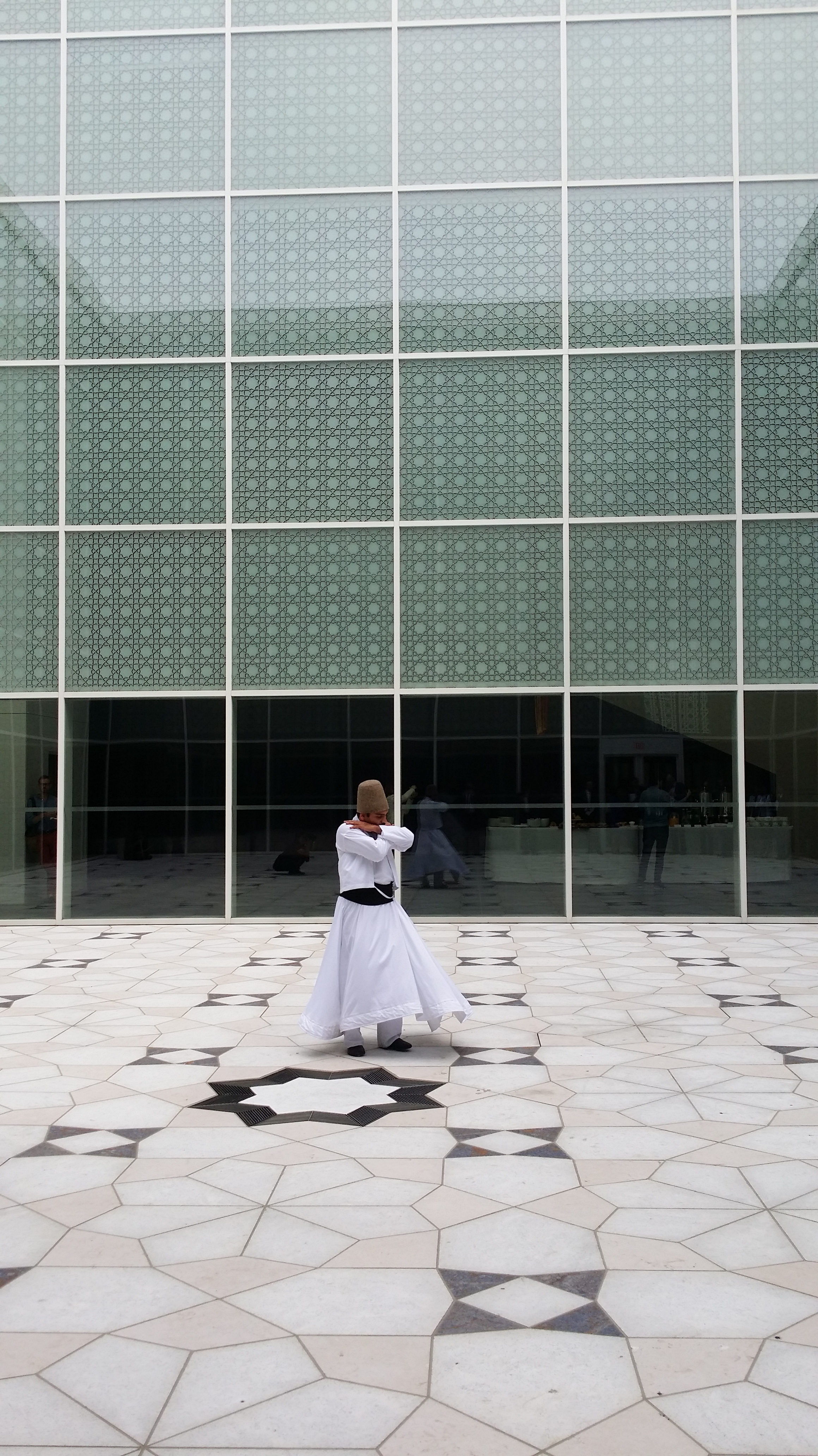 Courtyard Performance – Whirling Dervesh – 20140910_123016 September 18, 2014 Discovering the Aga Khan Museum: Performing Arts Venues – Auditorium, Courtyard, Hallways and the Park 2320 × 4128 Whirling dervish (Ismailimail/AM)