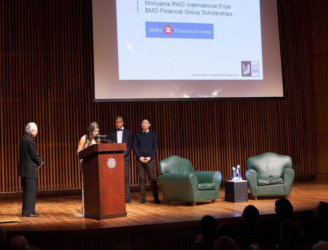 M-RAIC Prize – BMO Scholarships – Image Courtesy RAIC October 13, 2014 Archinect News | Reporting from [Aga Khan Museum] Toronto: Li Xiaodong wins inaugural Moriyama RAIC International Prize for the Liyuan Library 650 × 496 On stage the student winners of the $5,000 CAD scholarships sponsored by the BMO Financial Group (Image Courtesy RAIC) On stage the student winners of the $5,000 CAD scholarships sponsored by the BMO Financial Group (Image Courtesy RAIC)