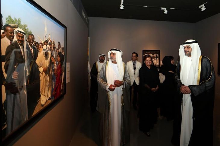 His Highness and His Excellency were given a guided tour of the retrospective on the late photojournalist, Noor Ali Rashid, by his daughter Shamsa Noor Ali Rashid, Chairperson of The Noor Ali Rashid Archives. They were accompanied by Abdullah M. Al Owais, Chairman of Sharjah Department of Culture and Information, Shaikh Mohammad Bin Saud Bin Sultan Al Qasimi, Chairman of the Department of Central Finance, Shaikh Salim bin Abdul Rehman Al Qasimi, Director of HH Ruler of Sharjah’s Office, Mohamad Humaid Al Qasimi, Dr. Zaki Nusseibeh Cultural Advisor at the Ministry of Presidential Affairs, Hisham Al Madhloum, Director of Art Directorate at the Department of Culture and Information in Sharjah, in addition to Manal Ataya, Director General of Sharjah Museums Department, and Reem Binkaram, Acting Director of Sharjah Children’s Centres.