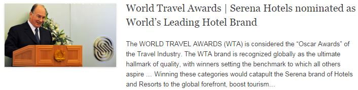 Earlier and Related – Stories at Ismailimail about Award Winning Serena Hotels