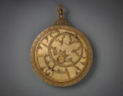 Planispheric Astrolabe, from the Iberian peninsula, 14th c., bronze inlaid with silver, 5 1/3 inches diameter; courtesy of Aga Khan Museum, Toronto.