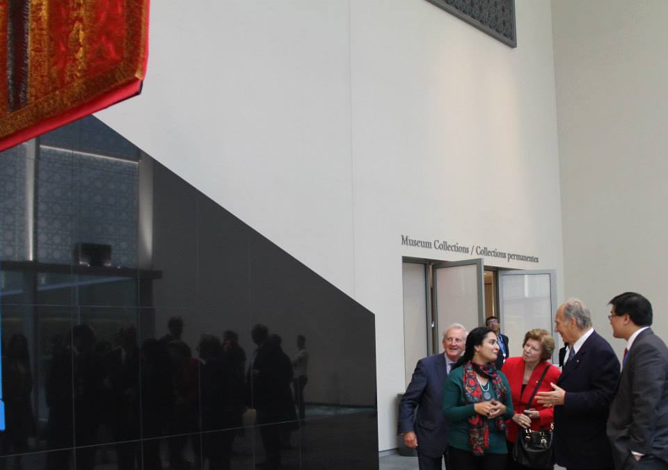 His Highness The Agha Khan with Aisha Khalid viewing ‘Your way begins on the other side’ 2014 (Source- FB) – 2 September 23, 2014 Women & Leadership: Discovering the Aga Khan Museum: In conversation with Pakistan’s Genius Artist – Aisha Khalid 960 × 676