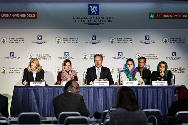 Symposium on Women’s Rights and Empowerment in Afghanistan – Press Conference From left Catherine M. Russell, United States Ambassador at Large for Global Women’s Issues, Rula Ghani, First Lady of the Islamic Republic of Afghan (Photo: Norway MFA/ Kilian Munch)