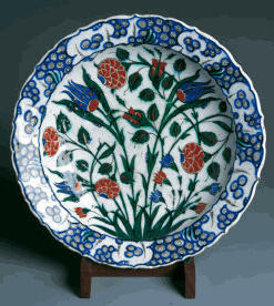 Under Ottoman reign, in the fifteenth and sixteenth centuries, the Turkish city of Iznik became a major centre of pottery making. Iznik was close to wood needed for kilns as well as other ingredients required for the production of ceramics. As a result, a distinctive style developed and came to be known as Iznik style: it involved combinations of a wide range of colours including cobalt blue, turquoise, green, black, and red.