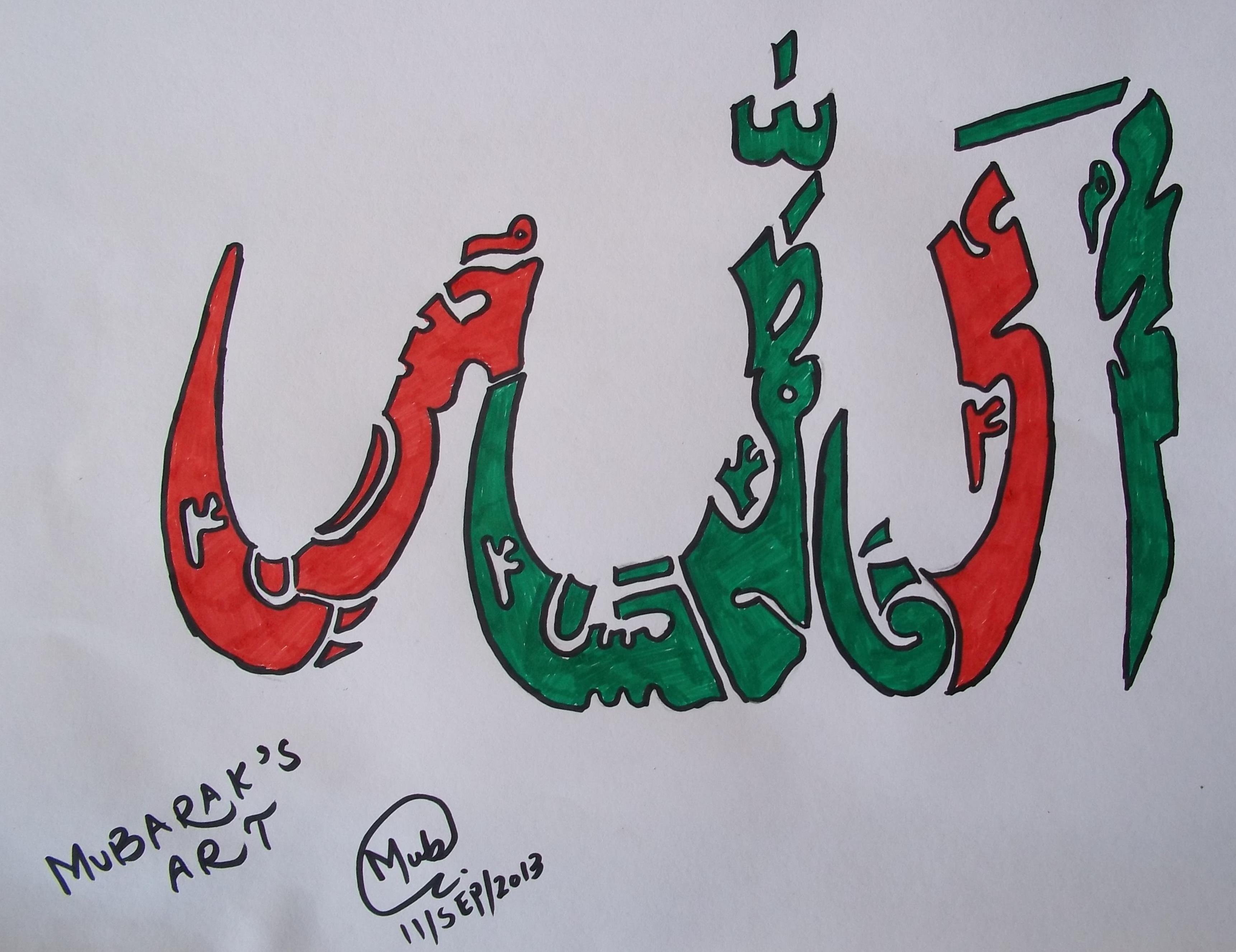 allah name calligraphy in panchtaan paak rs 1000 March 17, 2015 Sketch Art of Mubarak Muhammad Ali 3444 × 2652 Allah calligraphy in panjtan paak rs 1000