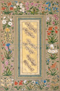 The practice of calligraphy, originating in China during the second millennium BC, spread to many regions including the Middle East. The art of transcribing the Qur’an in a beautiful script was considered a form of devotion and an act of piety. In contrast to painters, potters, and other artists, who generally remained anonymous, the calligraphers frequently signed their works and were thus well-known and highly esteemed.