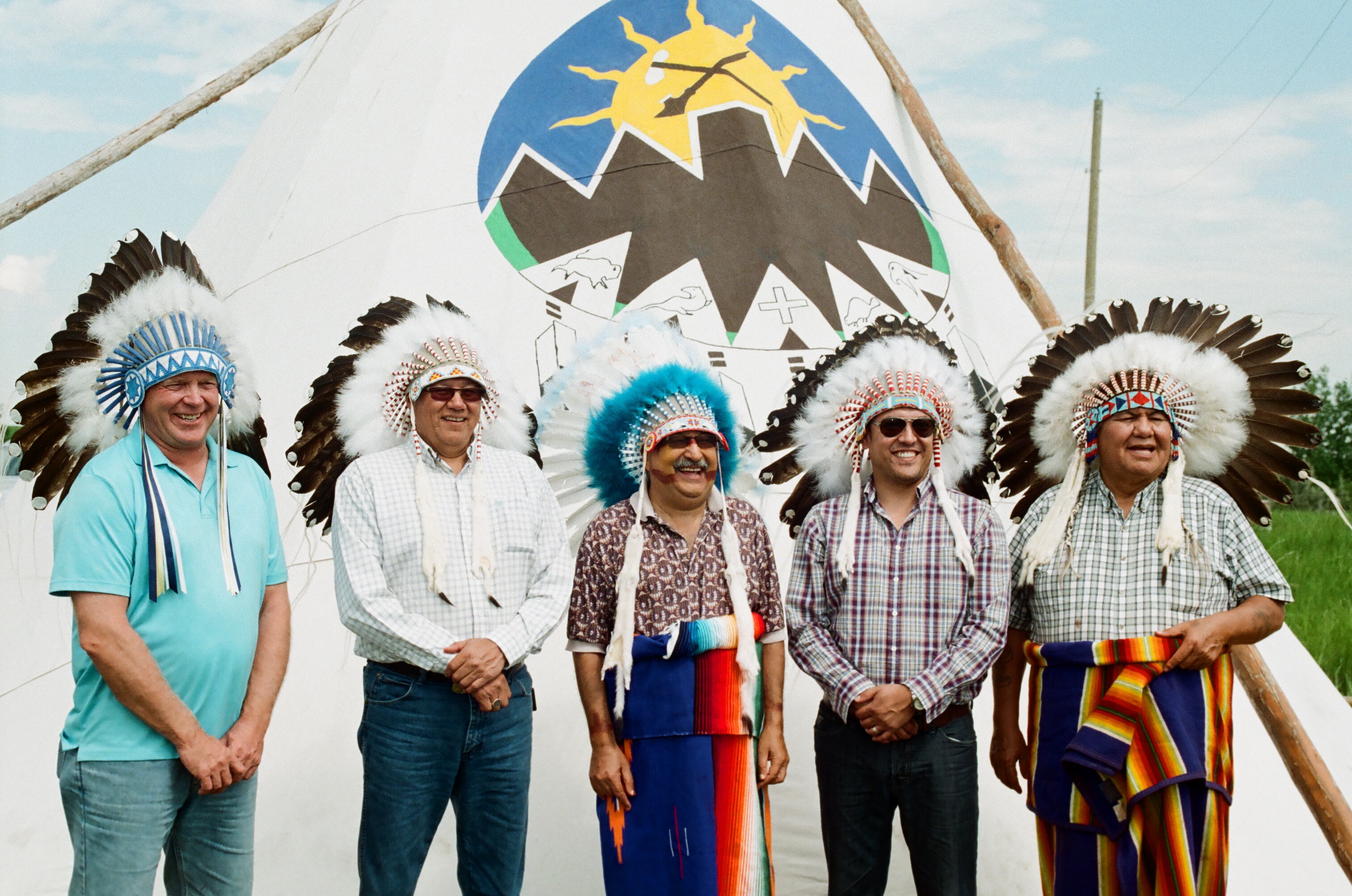Moez Maherali centre with Andy Popko Charles Weaselhead Ryan Robb Reg Crowshoe