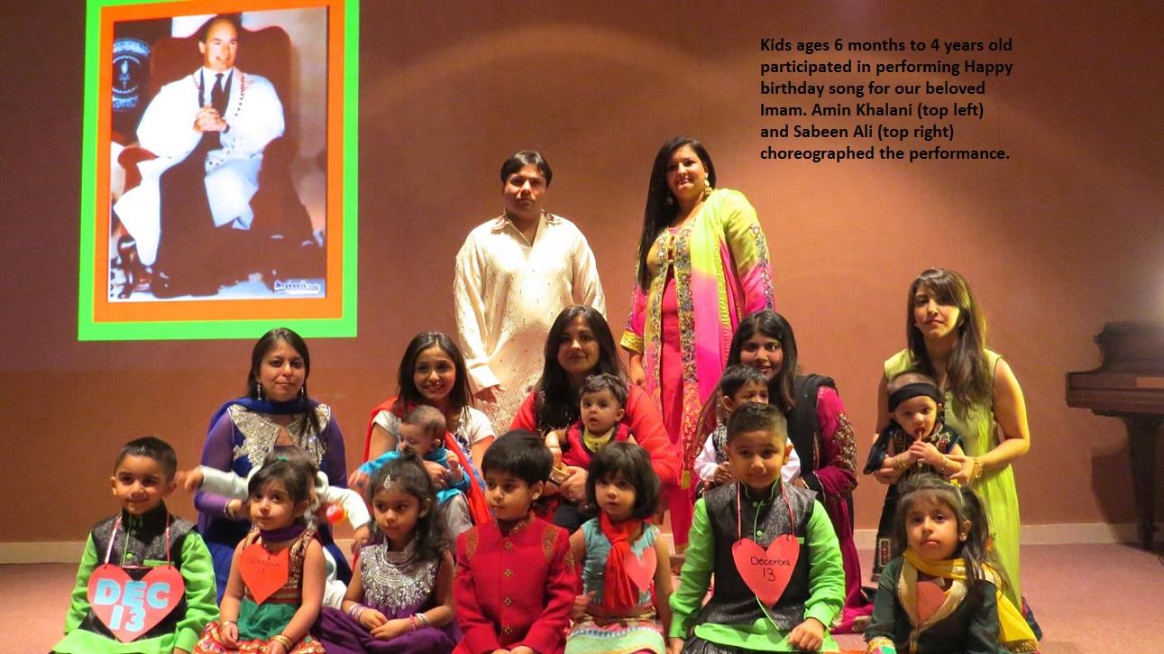 11236559_10153279242953441_2214657378906752639_o December 8, 2015 Mureeds celebrate Mawlana Hazar Imam’s 79th Salgirah 1291 × 725 Kids ages 6 months to 4 years old participated in performing “Happy birthday” song for our beloved Hazir Imam. Amin Khalani (top left) and Sabeen Ali(top right) choreographed the performance.