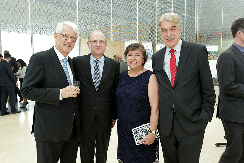 Ambassador of the Netherlands Cees Kole, left, with Portuguese Ambassador José Moreira da Cunha, Eleonore Wnendt-Juber and her spouse, German Ambassador Werner Wnendt at the Imamat Day reception. (Image credit: The Hill Times / Sam Garcia)