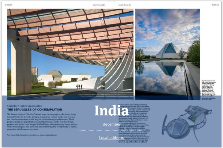 In the December 2014 issue of Domus India the Ismaili Centre, Toronto was featured on the front cover.
