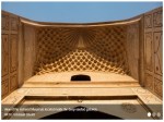 The chief features of Sheesh Mahal are gilt work (placing of pure gold), pietra dura work (inlay of semi-precious stones into white marble), marble perforated screens and the aiena kari (convex glass mosaic work) with monabat kari (stucco tracery). The versatility of variegated marble stone slabs (Sang-e-Musa, Sang-e-Abri, Sang-e-Badal) added the beauty of spacious courtyard in front of the palace. The shallow water basin is constructed in the center of Mahal that comprises four jet fountains. The other buildings are connected with basin through the four water channels on each side. The mirror reflects the stars and the bedrooms presents, in its ceiling, the panorama of a star lit sky.