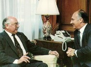 November 28, 2016 Countdown to Diamond Jubilee – Snapshots of Imamat – 1988 to 1992 324 × 241 Mawlana Hazar Imam in discussion with Marcel Masse, President of Canadian International Development Agency. Image: via Pinterest.