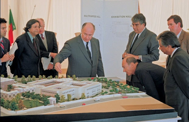 January 8, 2017 Countdown to Diamond Jubilee – Snapshots of Imamat – 1993 to 1997 621 × 402 At the foundation ceremony (1996) Mawlana Hazar Imam and Prince Amyn discuss the model of the Ismaili Centre, Lisbon as the architects and others look on. Photo: The Ismaili/Gary Otte