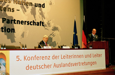 February 16, 2017 Countdown to Diamond Jubilee – Snapshots of Imamat – 2003 to 2007 471 × 308 Mawlana Hazar Imam speaking at the German Ambassadors conference, with Joschka Fischer, German Minister for Foreign Affairs, looking on (2004). Photo: AKDN / Patrick Ruchdi