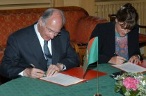Mawlana Hazar Imam and Norway’s Minister for International Development, Ms. Hilde F. Johnson, sign a Memorandum of Understanding between the AKDN and the Government of Norway, to enhance collaboration on development issues and programmes in Africa, Central and South Asia ( 2005), Oslo, Norway. Photo: AKDN/Gary Otte