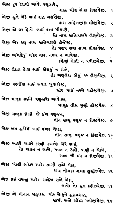 | eji e geenaan mahaaras peer gofte hasanshaah swaamee raajo seedak pateejee -e jee……………………14 |