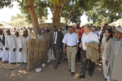 April 18, 2017 Mawlana Shah Karim’s Golden Jubilee Journey 420 × 280 Mawlana Hazar Imam walks through the village of Natugo, in Cabo Delgado, passing the village mosque, the primary school supported by Aga Khan Foundation and the Literacy Centre. Photo: AKDN/Gary Otte