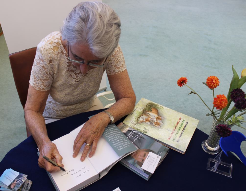 Book signing: Diana Miserez, author of trilingual children’s story book “The Three Little Fox Cubs” & “Prince Sadruddin Aga Khan: Humanitarian and Visionary” (image credit: UN Library)