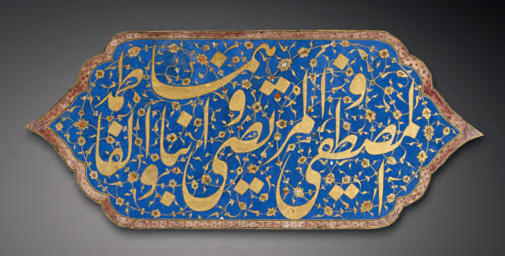 May 11, 2017 Prince Amyn Aga Khan: “This dialogue – silent, musical, literary – is what binds us all together in a common cultural heritage that we share.” 728 × 370 Calligraphic panel Iran, Safavid, 16th –17th century. Text: Al-Mustafa wa-l-Murtada wa-bnahuma wa-l-Fatima (referring to Prophet Muhammad, ³Ali ibn Abi Talib, Fatima, Hasan, and Husayn). AKTC