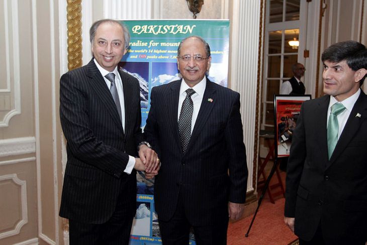 Celebrating Pakistan’s national day: Mahmoud Eboo, resident representative of the Aga Khan Development Network, with Pakistani High Commissioner Tariq Khan and a minister of the high commission, Muhammed Saleem. The Hill Times photograph by Sam Garcia