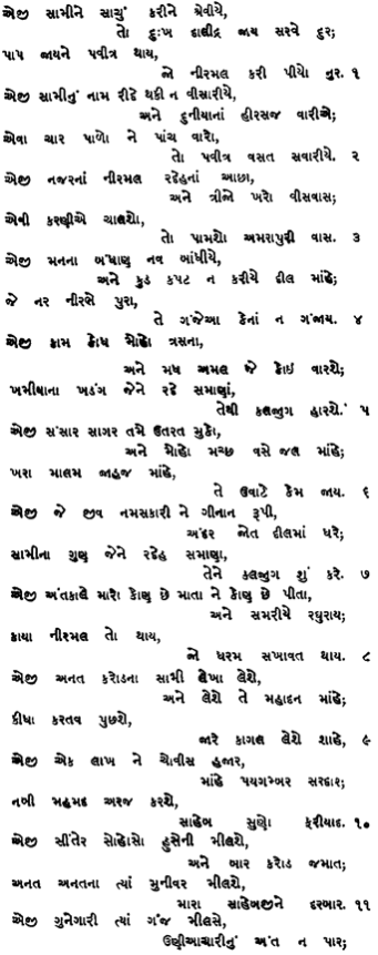 | Eji Swaami-ne saachu(n) karine sreviye to dukh daalidr jaay sarve dur paap jaayne pavitr thaay jo nirmal kari piyo Noor.. ..1 |