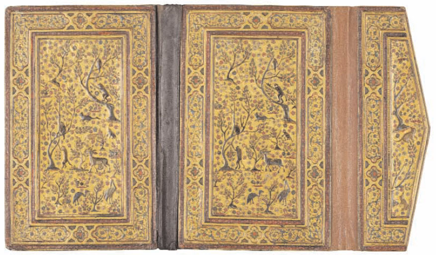 bookbinding July 25, 2017 Persian miniature painting influenced the art of decorating book covers 877 × 513 Leather, gilded and painted, varnish book cover, Safavid Iran, c. 1750–1830. Aga Khan Museum.