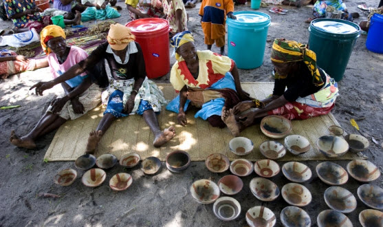 Technical expertise and facilitation systems that help craftsmen link with buyers further afield have been set up to assist villagers. Pottery and terracotta jewellery are typical creations that are sold at the local market. Photo: AKDN/Lucas Cuervo Moura