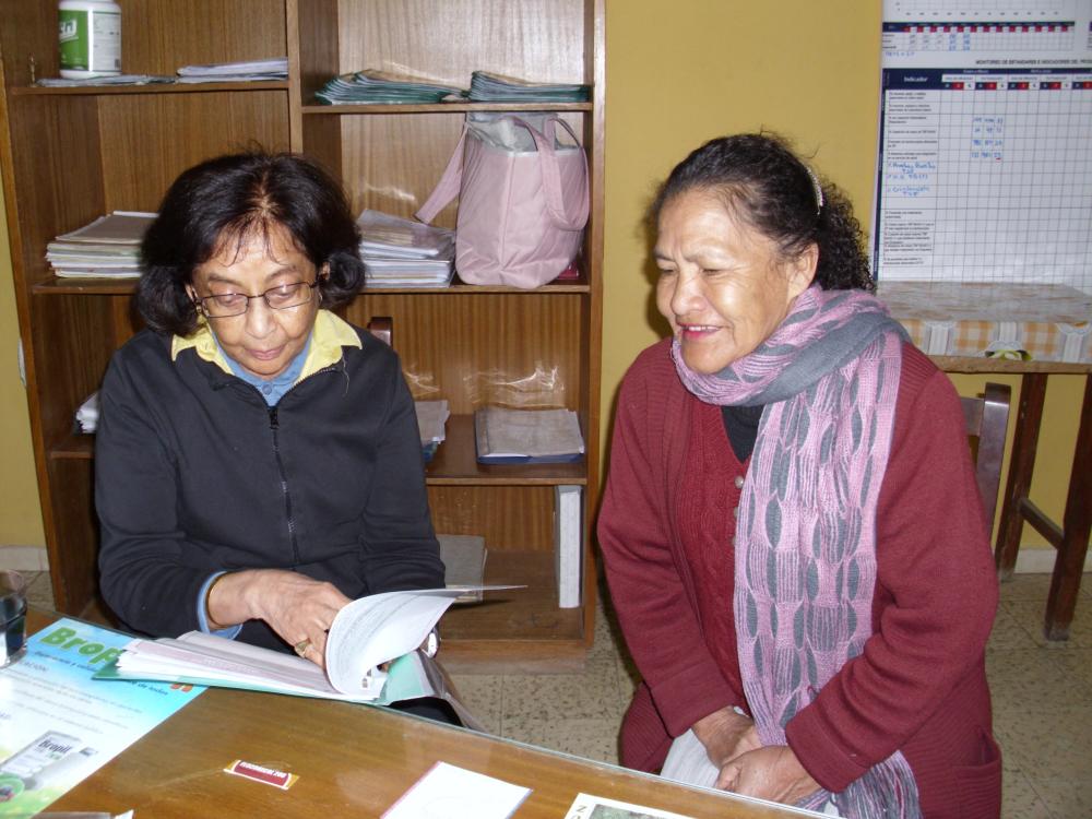 DSCI0056 April 27, 2018 Dr. Amina Jindani: Ibn Sina Award for medicine conferred on world renowned specialist for life long commitment to the eradication of tuberculosis 1000 × 750 Discussing treatment progress with a patient at Centro de Tuberculosis, Cruz Roja, Santa Cruz, Bolivia, January, 2010.