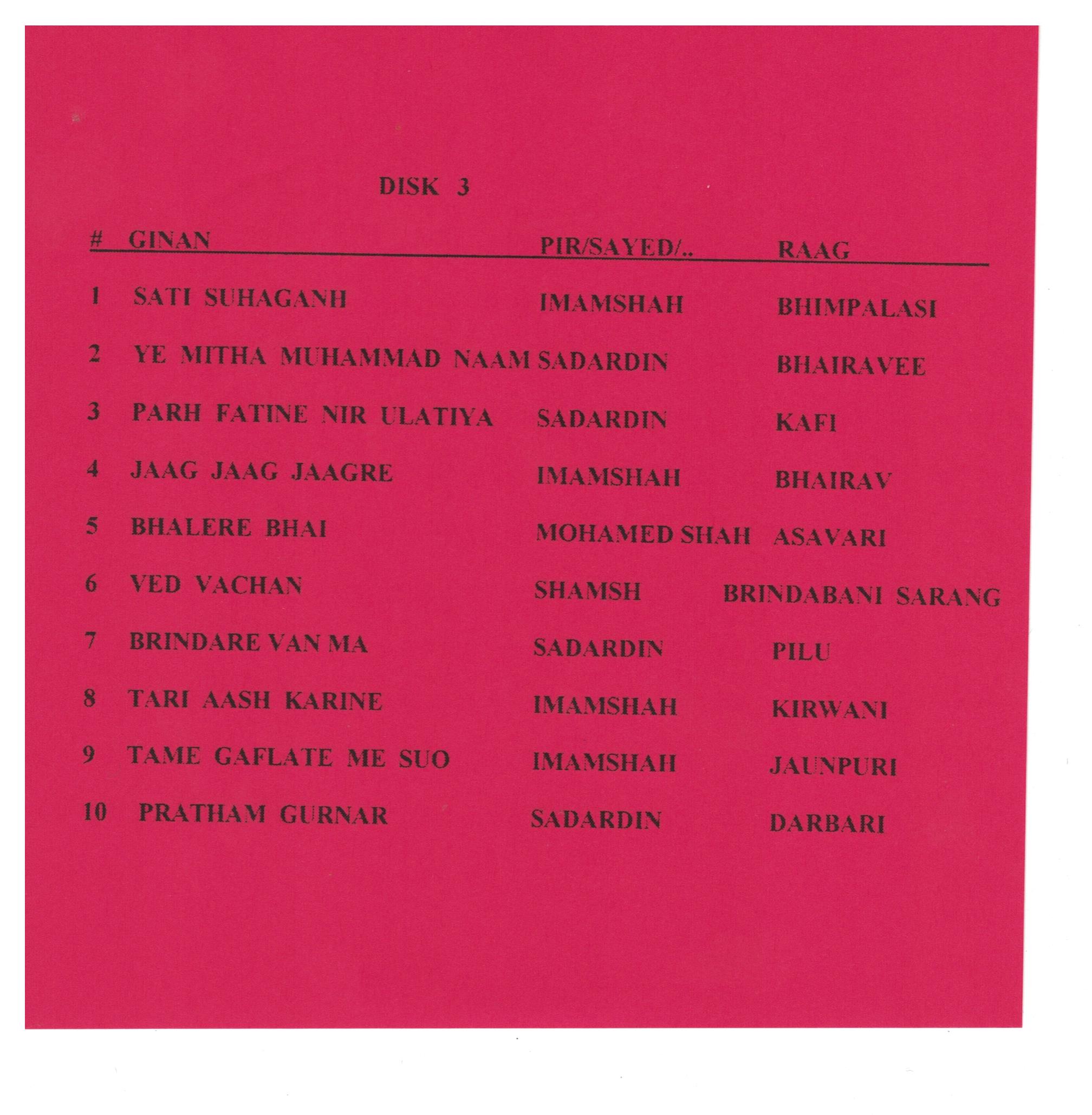 Nasim Bhimji: Ginans with Music – From My Soul To Yours | CD 3 by ismailimail Posted on June 24, 2018June 23, 2018 Sati Suhaghan Yeh Mitha Muhammad Naam Parh Fatine Nir Ulatiya Jaag Jaag Jaagre Bhalere Bhai Ved Vachan Brindare Van Ma Tari Aash Karine Tame Gaflate Me Suo Pratham Gurnar Share this via: Click to email a link to a friend (Opens in new window) Email Click to share on WhatsApp (Opens in new window) WhatsApp Click to share on Reddit (Opens in new window) Reddit Click to share on Bluesky (Opens in new window) Bluesky Click to share on LinkedIn (Opens in new window) LinkedIn Click to share on Facebook (Opens in new window) Facebook Click to share on Threads (Opens in new window) Threads Click to share on Nextdoor (Opens in new window) Nextdoor More Click to share on Telegram (Opens in new window) Telegram Click to share on Pinterest (Opens in new window) Pinterest Click to share on Mastodon (Opens in new window) Mastodon Click to share on X (Opens in new window) X Click to share on Tumblr (Opens in new window) Tumblr Click to share on Print PDF (Opens in new window) Print PDF Like Loading... Related