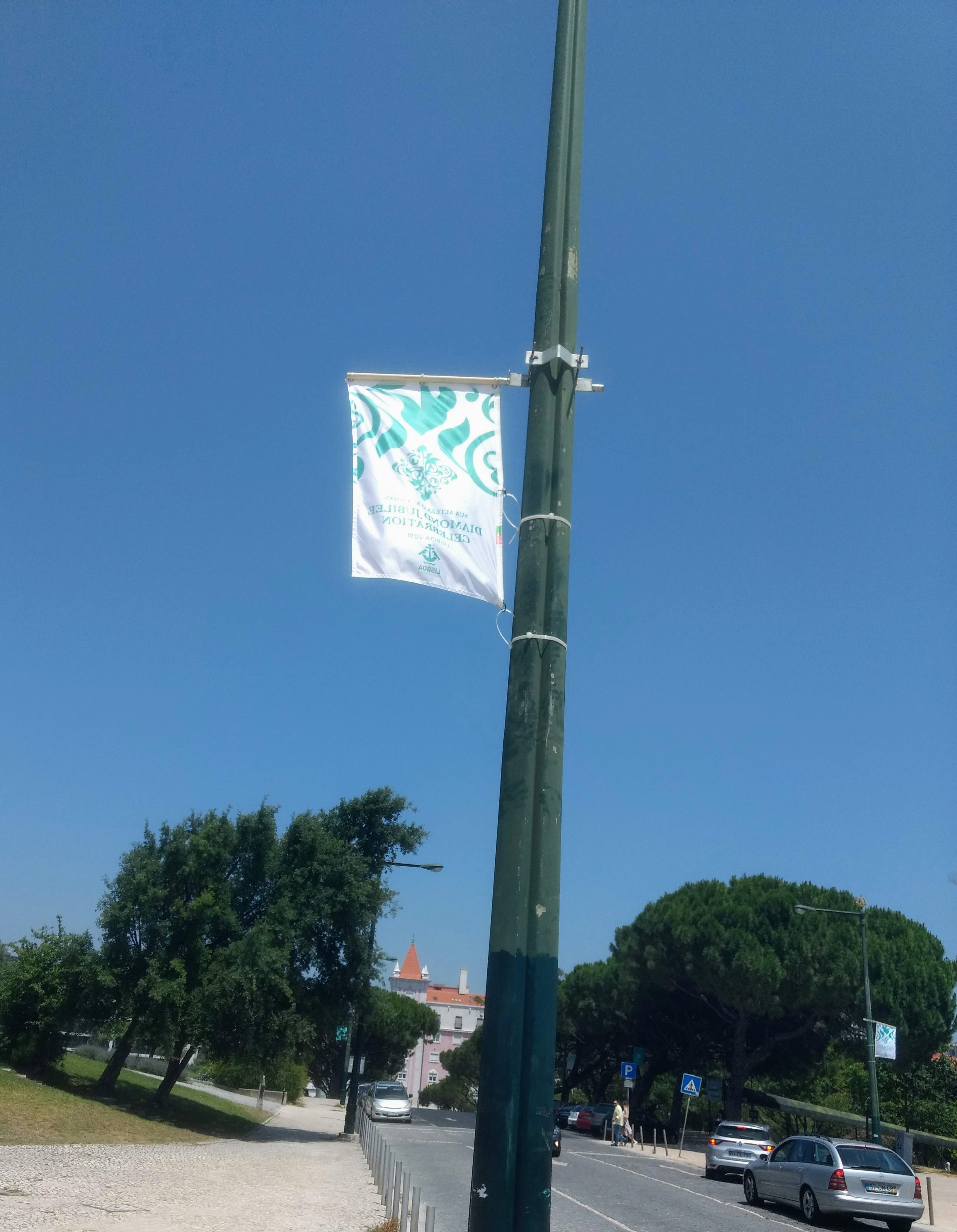 IMG_20180709_143148340 (1) July 9, 2018 Walk with us in Lisbon: Henrique Mendonça Palace and the nearby Eduardo VII Park 3159 × 4069 Diamond Jubilee banner at Edwardo Parque, opposite Henrique Mendonça Palace