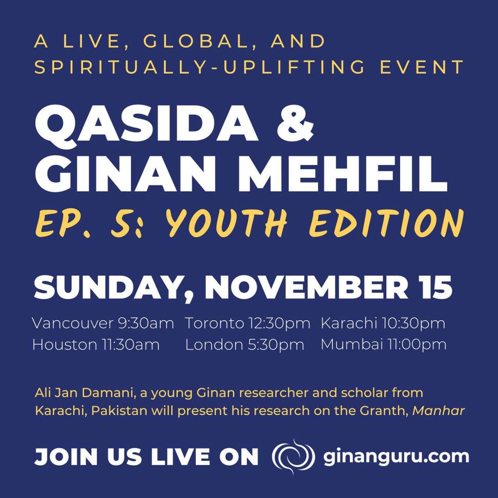 Ginanguru.com is hosting a special “Youth Edition” Qasida & Ginan Mehfil on Sunday,