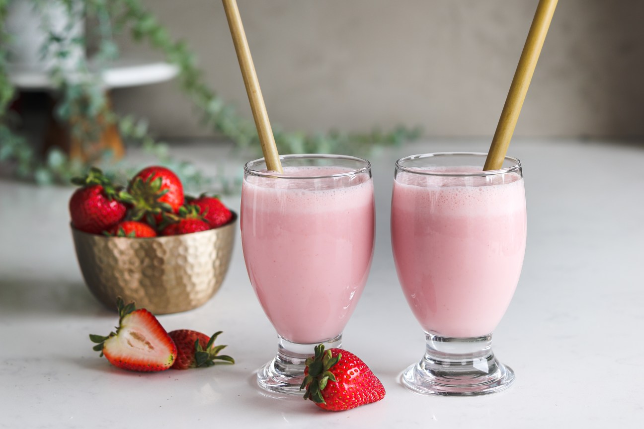 With zero added sugar, this sweet and refreshing strawberry lassi drink – with hints of tartness – is made with only four ingredients. Fresh juicy strawberries and greek yogurt, whizzed together with water and naturally sweetened with a low-calorie sweetener – erythritol, to create an easy and healthy Indian recipe that’s calling to “Drink me!” Watch the video and learn how to make this downright delicious sweet lassi in minutes.