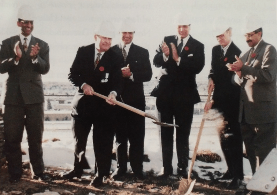 The groundbreaking ceremony of this first purpose built Jamatkhana in Calgary, designed by Farouk Noormohamed, was performed by then Premier of Alberta Ralph Klein and then Mayor Al Duerr, presided by then President of the Council for the Prairies Salim Sumar.