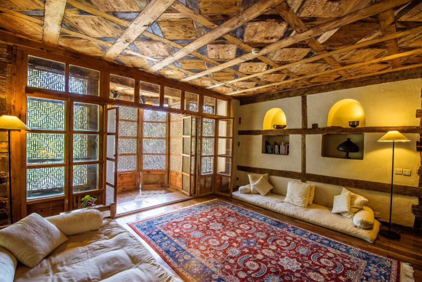 Royal Suite: Originally the Raja’s royal summer quarters, this non-smoking suite features one comfortable king bed, an adjoining sitting area, originally Raja’s Baithak, a “Shah-e-Nasheen” and an airy, hanging wooden latticework balcony. Decorated in period antiques with a splendid view of the Shigar stream, the room is appointed with a working desk, one exquisite bathroom and a powder room.