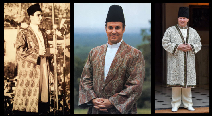 Mawlana Shah Karim’s robes comprise motifs known as paisley. The motif can be traced back at least 2,000 years to Persia, specifically to Zoroastrianism, the oldest monotheistic religion taught in sixth century BCE by the prophet Zarathustra, who was known as Zoroaster by the Greeks.